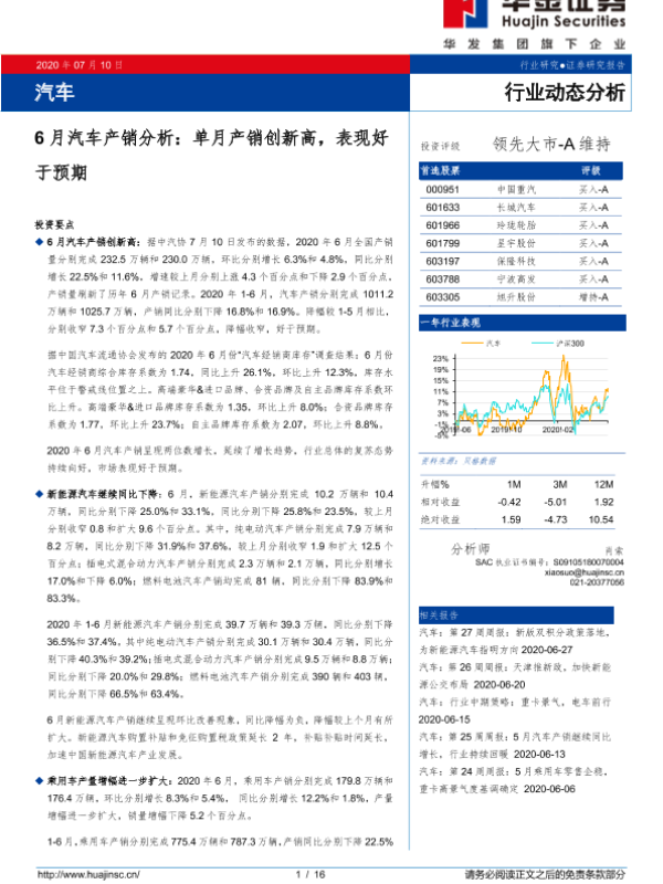 【华金证券】【20200710】6月汽车产销分析:单月产销创新高,表现好于预期-16页