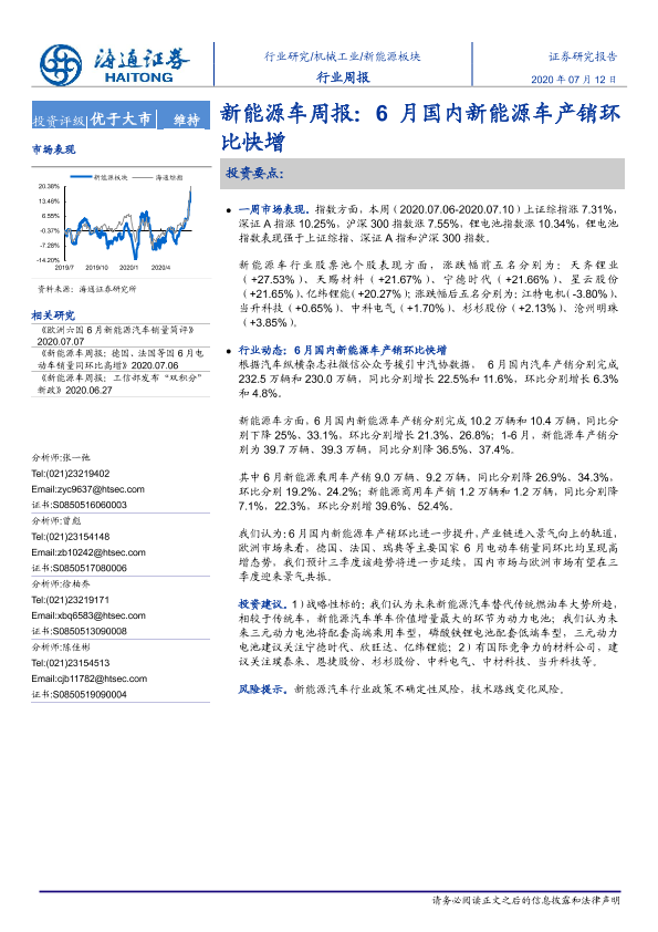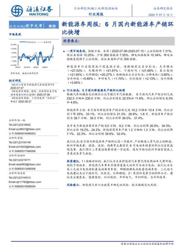 【海通证券】【20200712】20200712-海通证券-新能源车周报:6月国内新能源车产销环比快增-5页