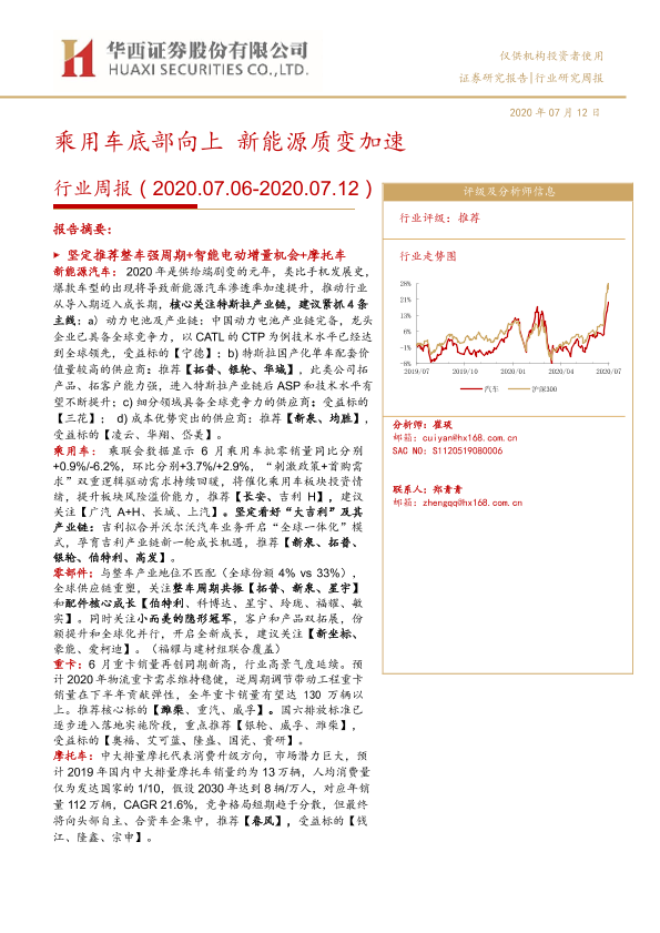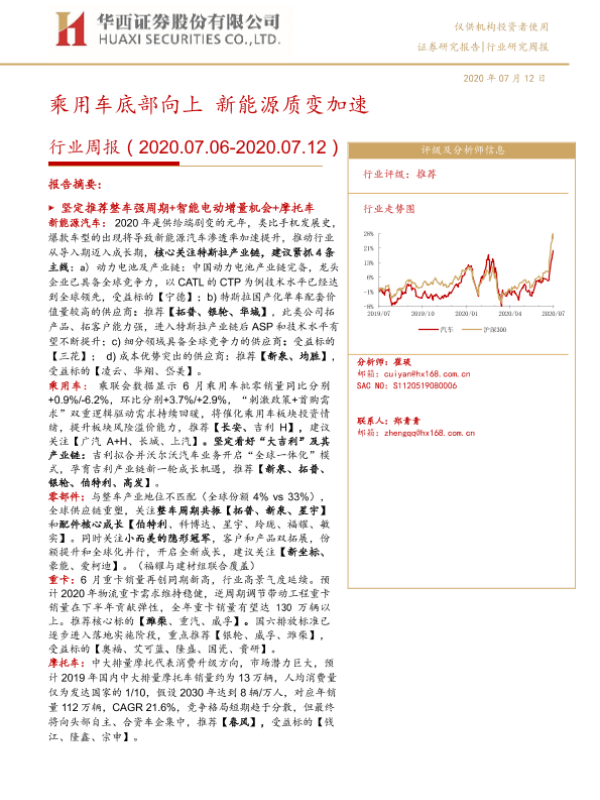 【华西证券】【20200712】20200712-华西证券-汽车行业周报:乘用车底部向上 新能源质变加速-20页