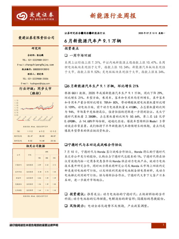 【爱建证券】【20200713】20200713-爱建证券-新能源行业周报:6月新能源汽车产9.1万辆-16页