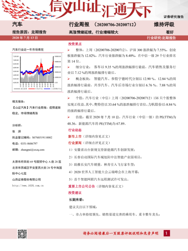 【山西证券】【20200713】20200713-山西证券-汽车行业周报:高涨情绪延续,行业增幅较大-14页