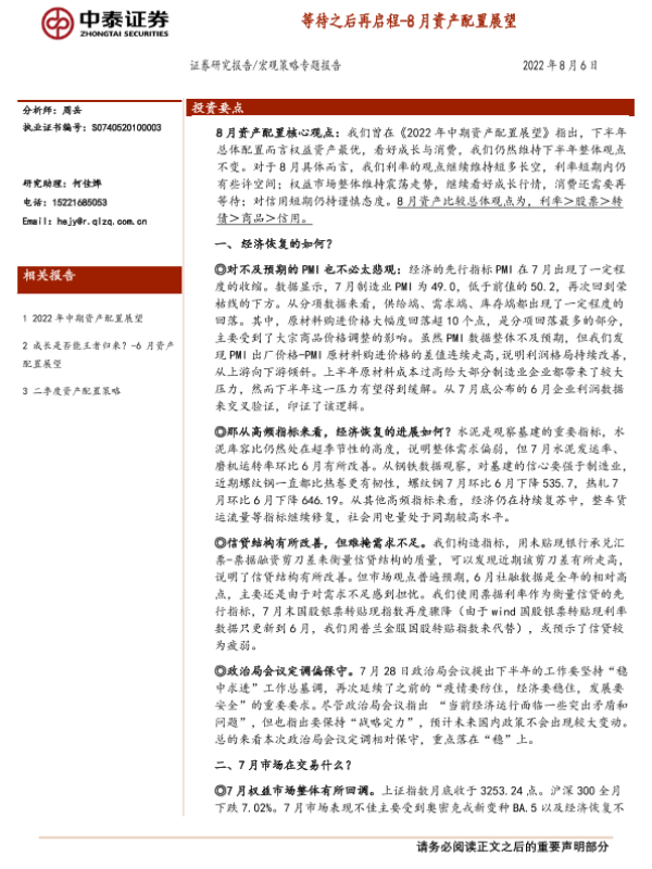 【中泰证券】【20220806】8月资产配置展望:等待之后再启程-26页