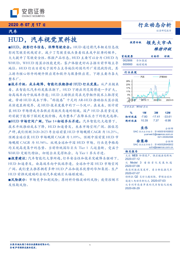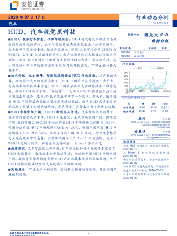 【安信证券】【20200717】HUD,汽车视觉黑科技-20页