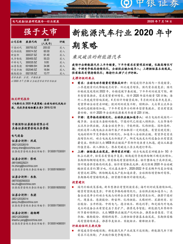 【中银证券】【20200714】新能源汽车行业2020年中期策略:乘风破浪的新能源汽车-43页