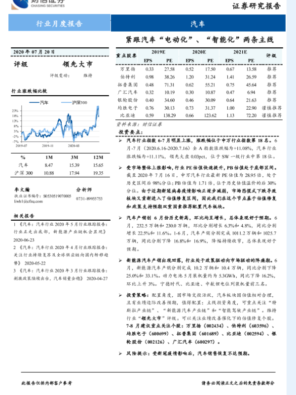 【财信证券】【20200720】紧跟汽车“电动化”、“智能化”两条主线-14页