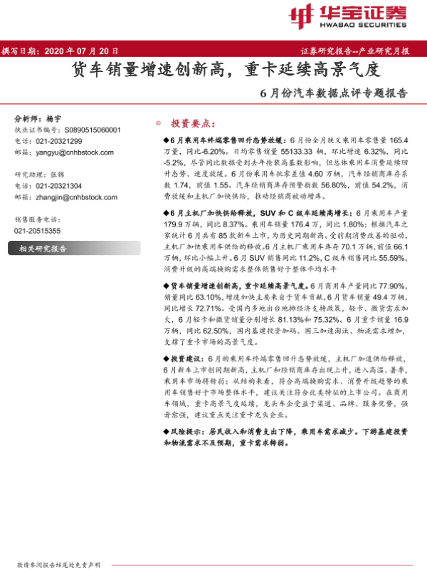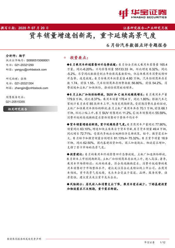 【华宝证券】【20200720】6月份汽车数据点评专题报告:货车销量增速创新高,重卡延续高景气度-12页