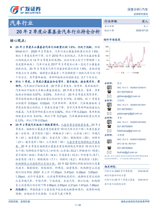 【广发证券】【20200723】20年2季度公募基金汽车行业持仓分析-13页
