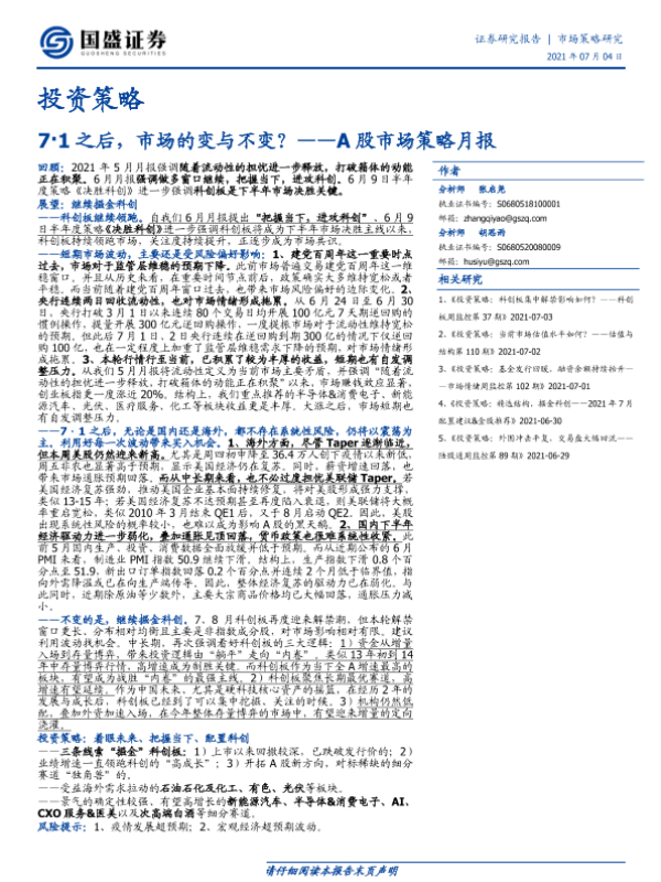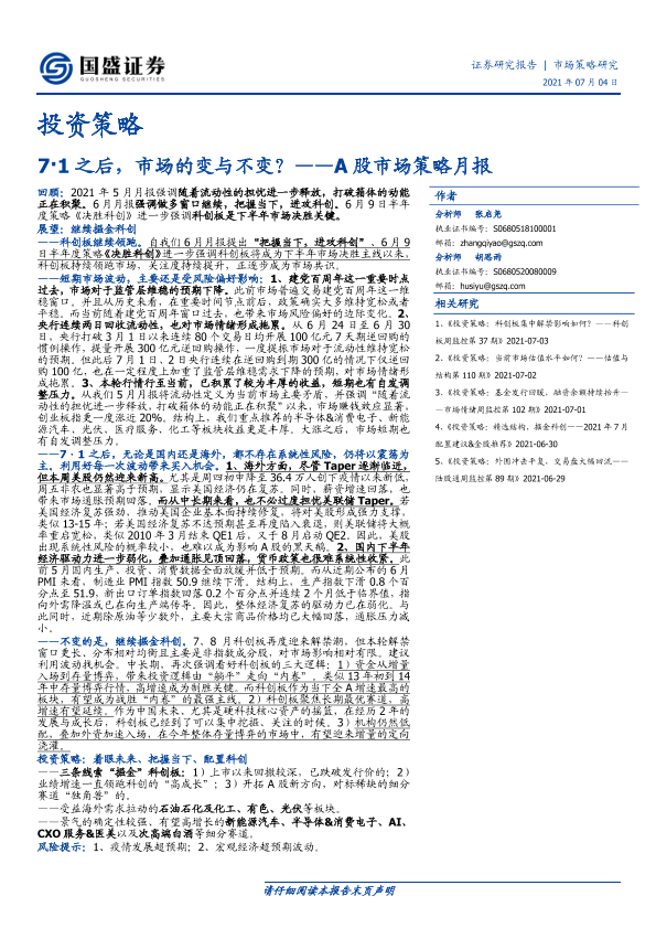 【国盛证券】【20210704】A股市场策略月报:7·1之后,市场的变与不变?-20页