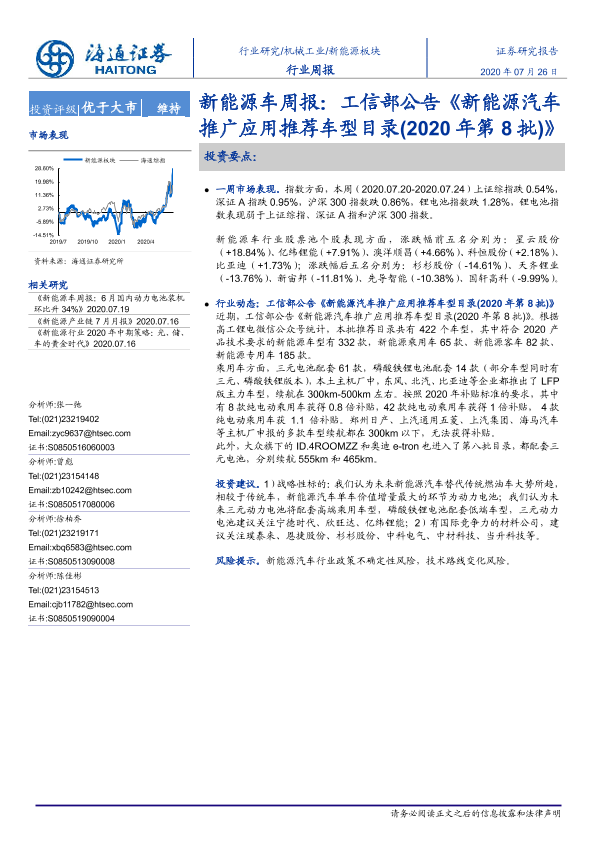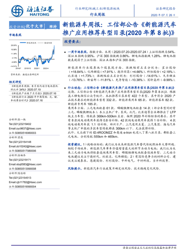 【海通证券】【20200726】新能源车周报:工信部公告《新能源汽车推广应用推荐车型目录(2020年第8批)》-3页