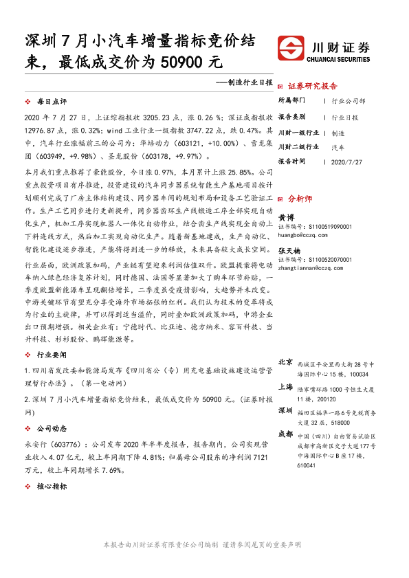 【川财证券】【20200727】深圳7月小汽车增量指标竞价结束,最低成交价为50900元-4页