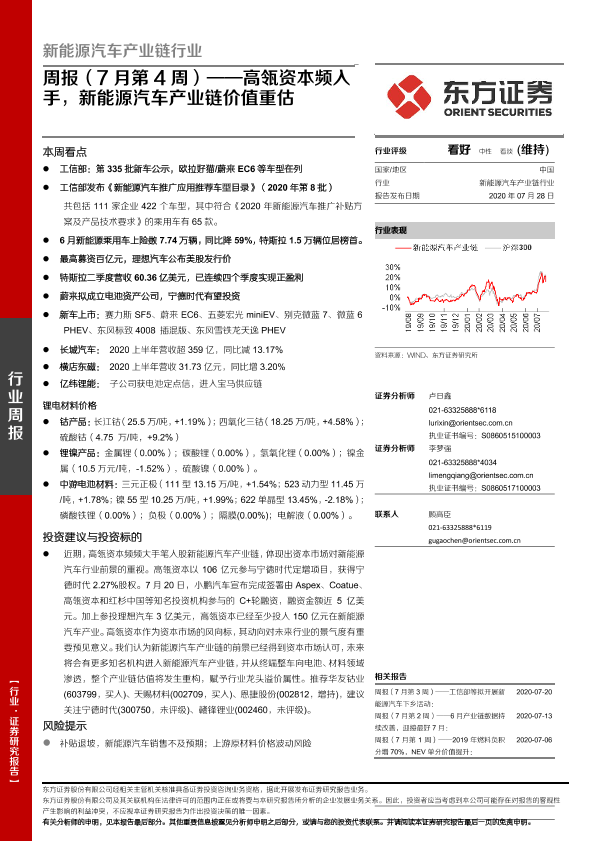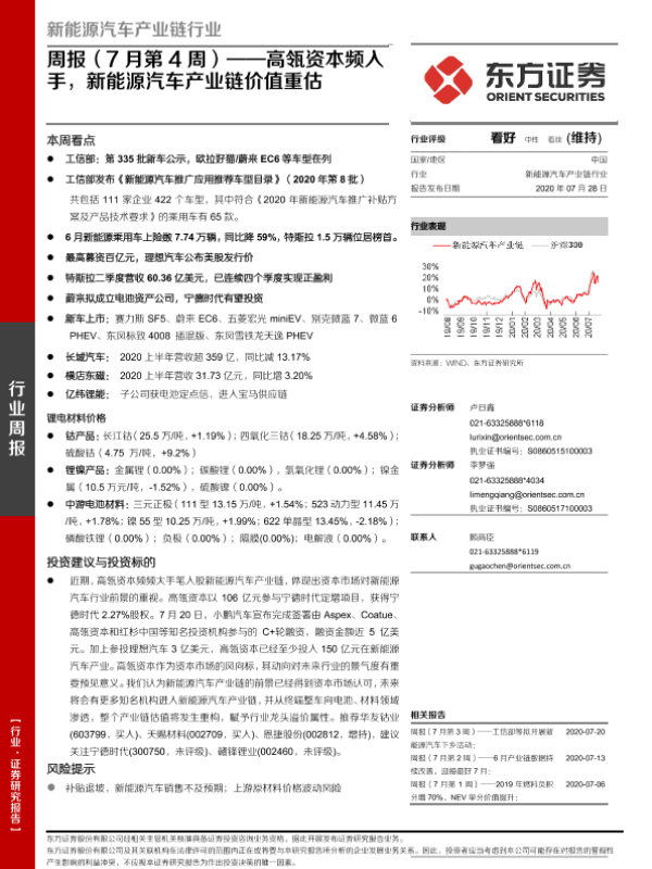 【东方证券】【20200728】新能源汽车产业链行业周报(7月第4周):高瓴资本频入手,新能源汽车产业链价值重估-25页
