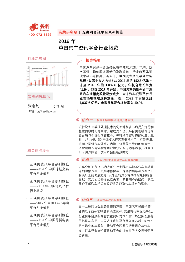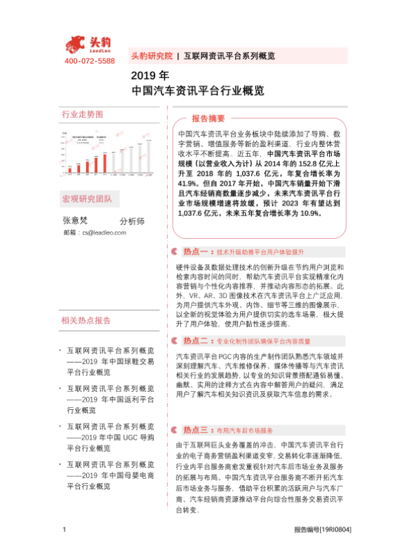 【头豹研究院】【2019】2019年中国汽车资讯平台行业概览-33页
