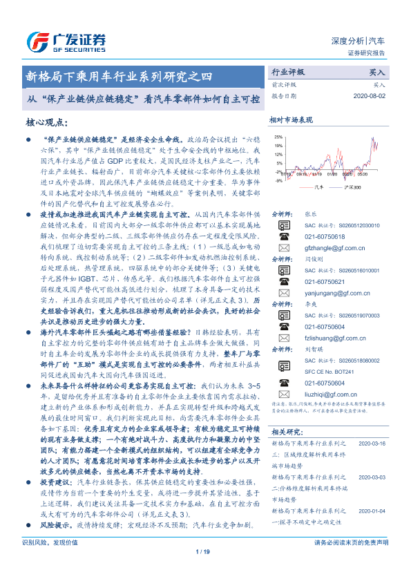 【广发证券】【20200802】新格局下乘用车行业系列研究之四:从“保产业链供应链稳定”看汽车零部件如何自主可控-19页
