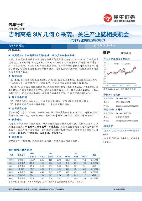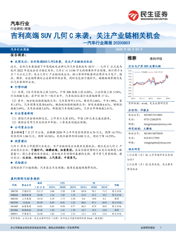 【民生证券】【20200803】20200803-民生证券-汽车行业周报:吉利高端SUV几何C来袭,关注产业链相关机会-21页