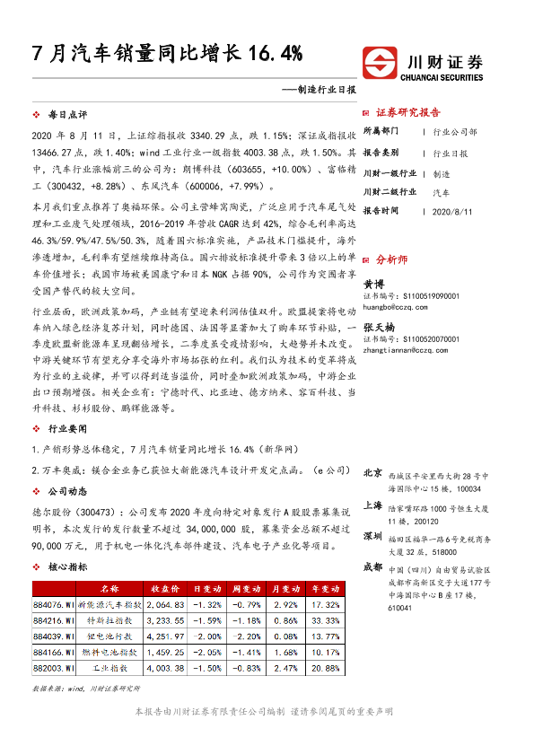 【川财证券】【20200811】7月汽车销量同比增长16.4%-3页