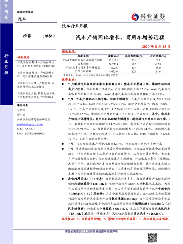 【兴业证券】【20200813】汽车产销同比增长,商用车增势迅猛-13页