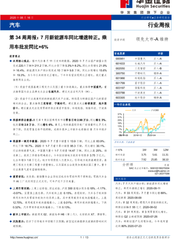 【华金证券】【20200816】汽车第34周周报:7月新能源车同比增速转正,乘用车批发同比+6%-13页