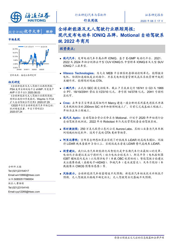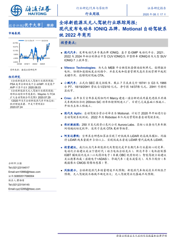 【海通证券】【20200817】全球新能源及无人驾驶行业跟踪周报:现代发布电动车IONIQ品牌,Motional自动驾驶系统2022年商用-5页