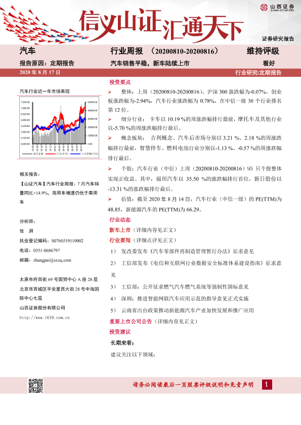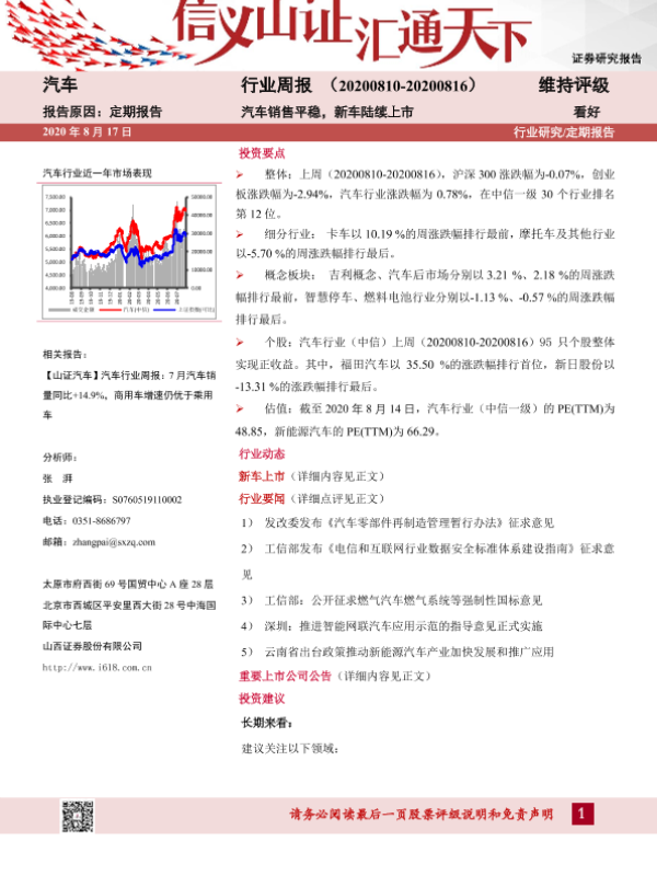 【山西证券】【20200817】20200817-山西证券-汽车行业周报:汽车销售平稳,新车陆续上市-14页