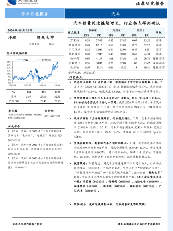 【财信证券】【20200820】20200820-财信证券-汽车行业月度报告:汽车销量同比继续增长,行业拐点得到确认-14页
