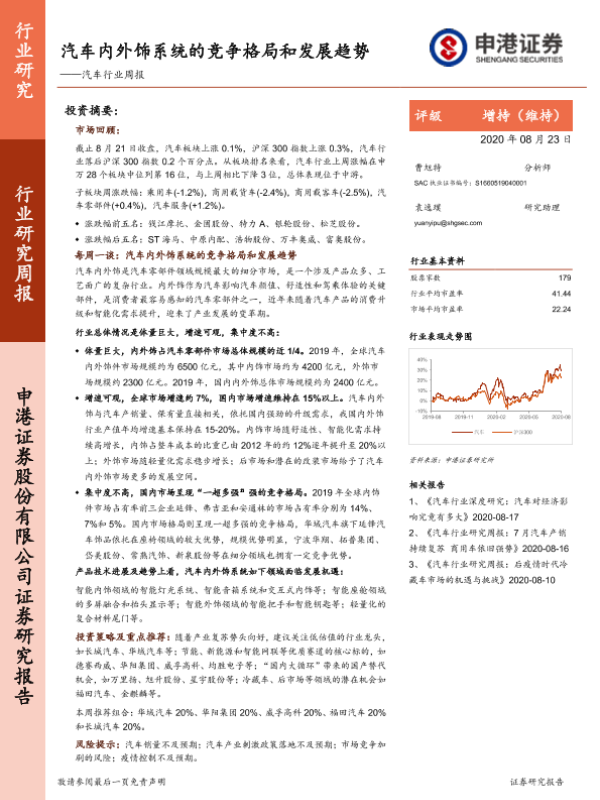 【申港证券】【20200823】汽车行业周报:汽车内外饰系统的竞争格局和发展趋势-22页