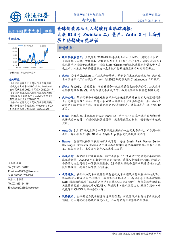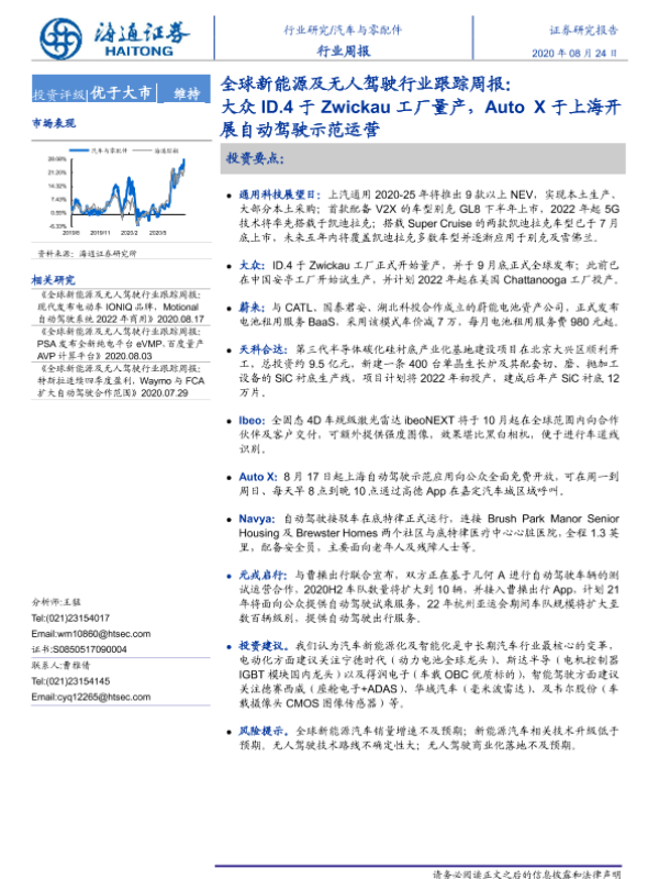 【海通证券】【20200824】全球新能源及无人驾驶行业跟踪周报:大众ID.4于Zwickau工厂量产,AutoX于上海开展自动驾驶示范运营-5页