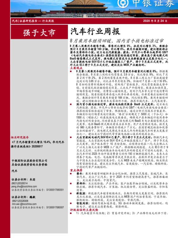 【中银证券】【20200824】20200824-中银证券-汽车行业周报:8月乘用车继续回暖,国内首个换电标准过审-15页