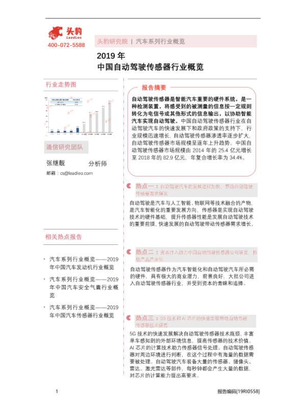 【头豹研究院】【2019】2019年中国自动驾驶传感器行业概览-29页