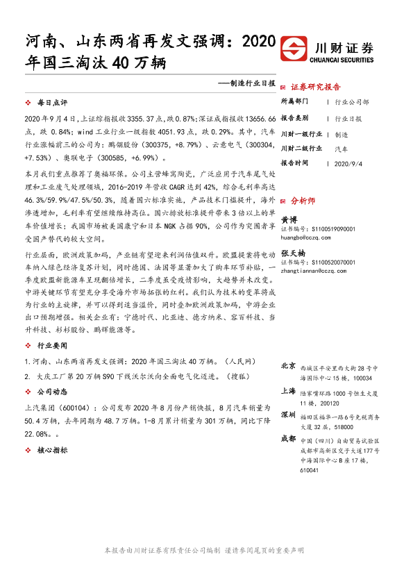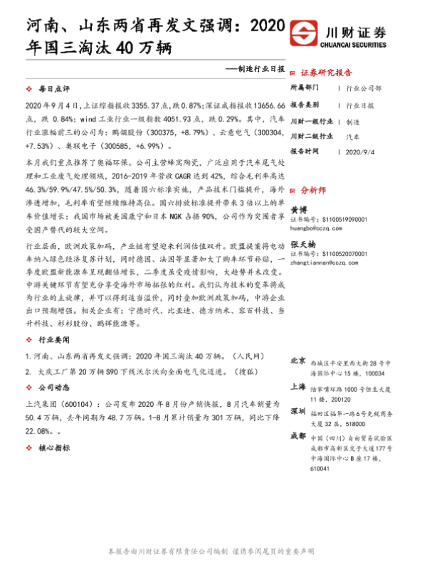【川财证券】【20200904】制造行业日报:河南、山东两省再发文强调:2020年国三淘汰40万辆-3页