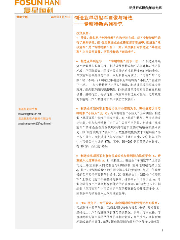 【复星恒利】【20220810】专精特新系列研究:制造业单项冠军画像与精选-15页