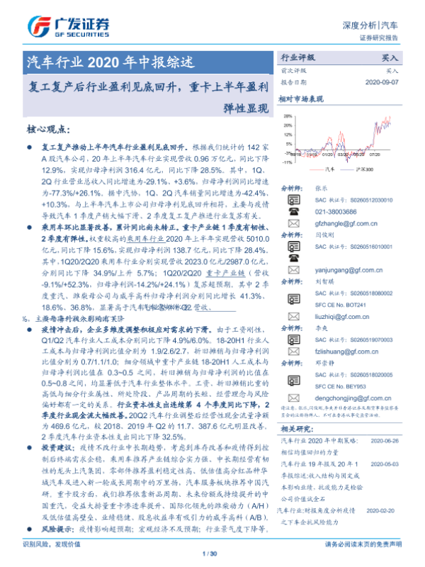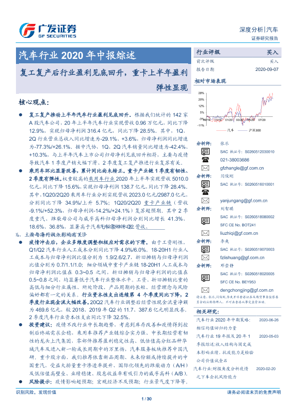 【广发证券】【20200907】汽车行业2020年中报综述:复工复产后行业盈利见底回升,重卡上半年盈利弹性显现-30页