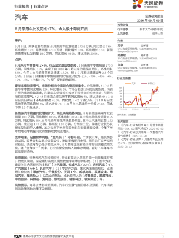【天风证券】【20200909】汽车行业点评:8月乘用车批发同比+7%,金九银十即将开启-11页