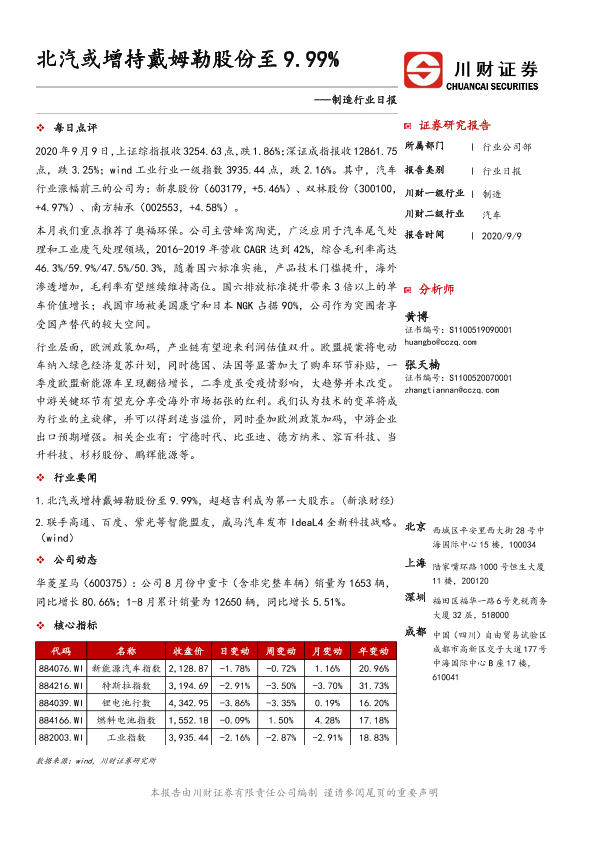 【川财证券】【20200909】制造行业日报:北汽或增持戴姆勒股份至9.99%-3页