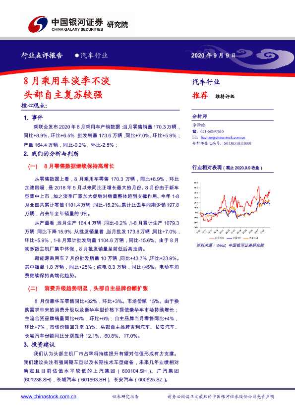 【银河证券】【20200909】20200909-中国银河-汽车行业:8月乘用车淡季不淡 头部自主复苏较强-5页