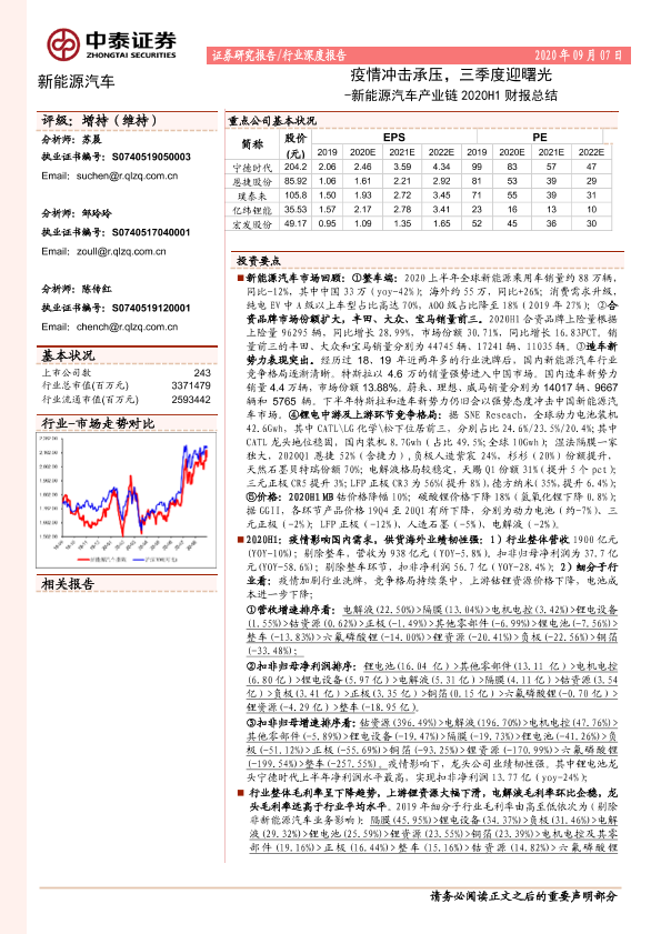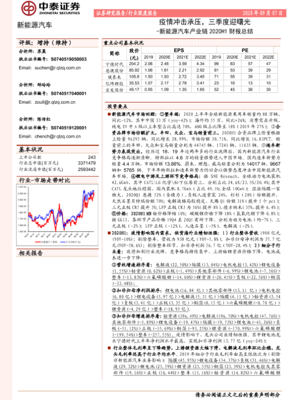 【中泰证券】【20200907】新能源汽车产业链2020H1财报总结:疫情冲击承压,三季度迎曙光-54页
