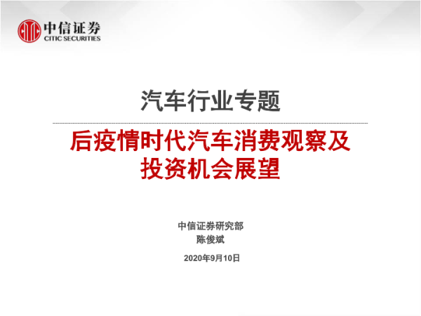 【中信证券】【20200910】后疫情时代汽车消费观察及投资机会展望-19页