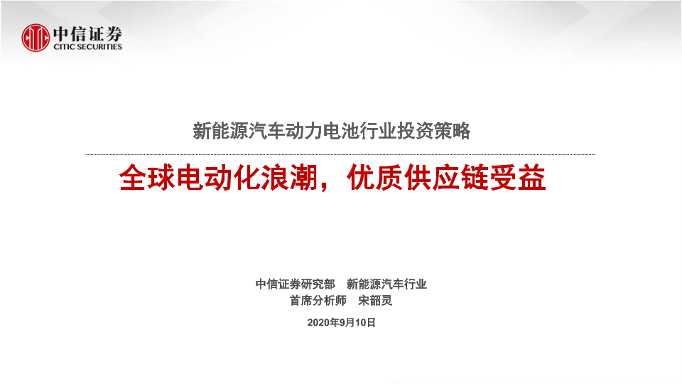 【中信证券】【20200910】新能源汽车动力电池行业投资策略:全球电动化浪潮,优质供应链受益-35页
