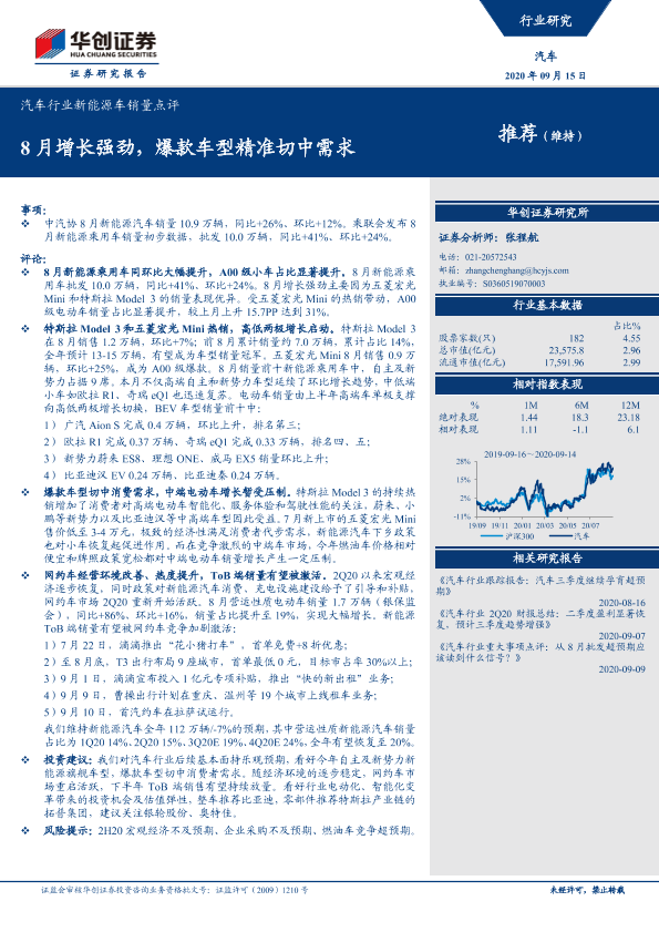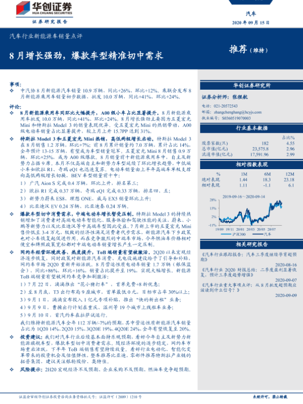 【华创证券】【20200915】20200915-华创证券-汽车行业新能源车销量点评:8月增长强劲,爆款车型精准切中需求-8页