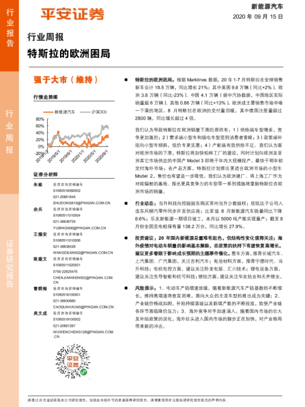 【平安证券】【20200915】新能源汽车行业周报:特斯拉的欧洲困局-13页