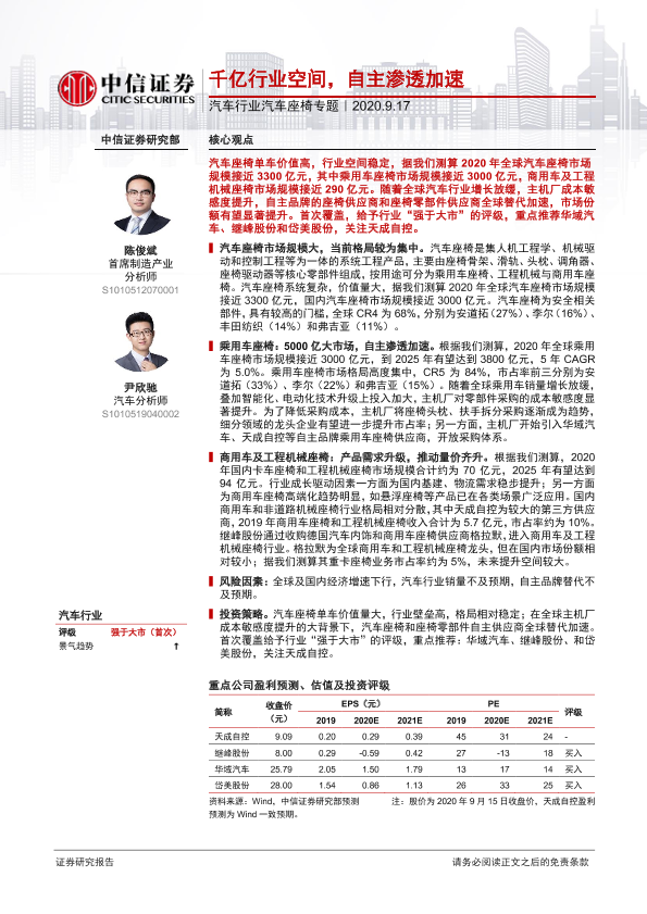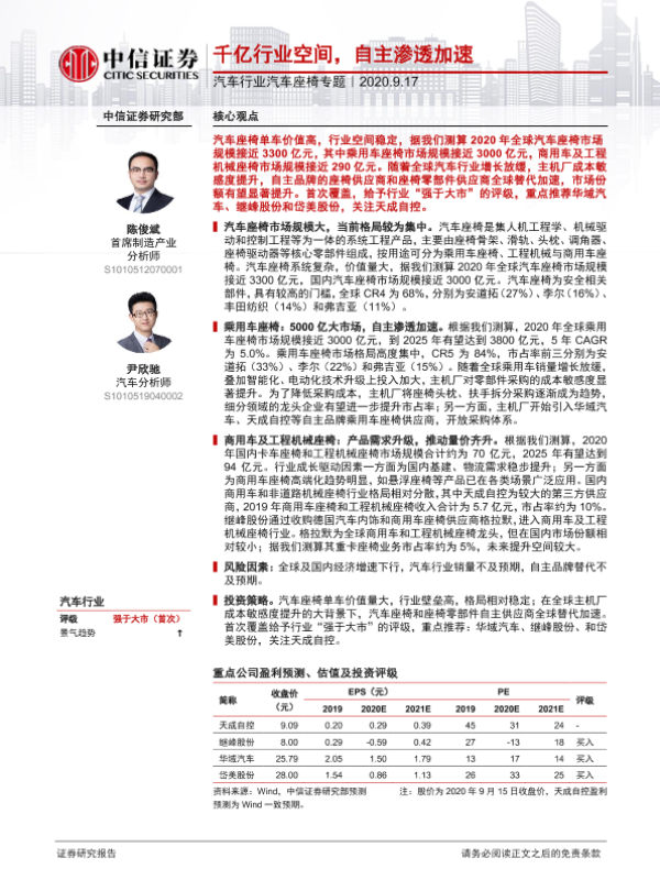 【中信证券】【20200917】汽车行业汽车座椅专题:千亿行业空间,自主渗透加速-17页