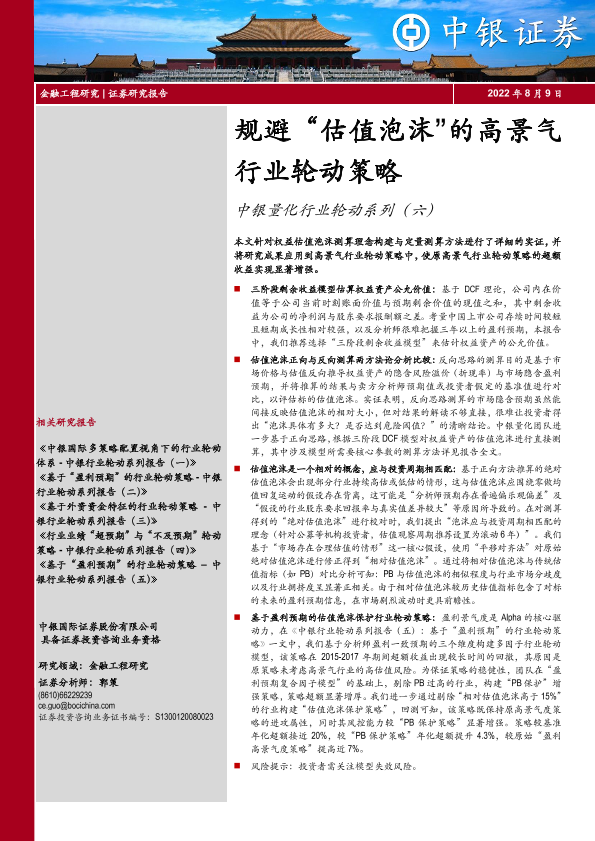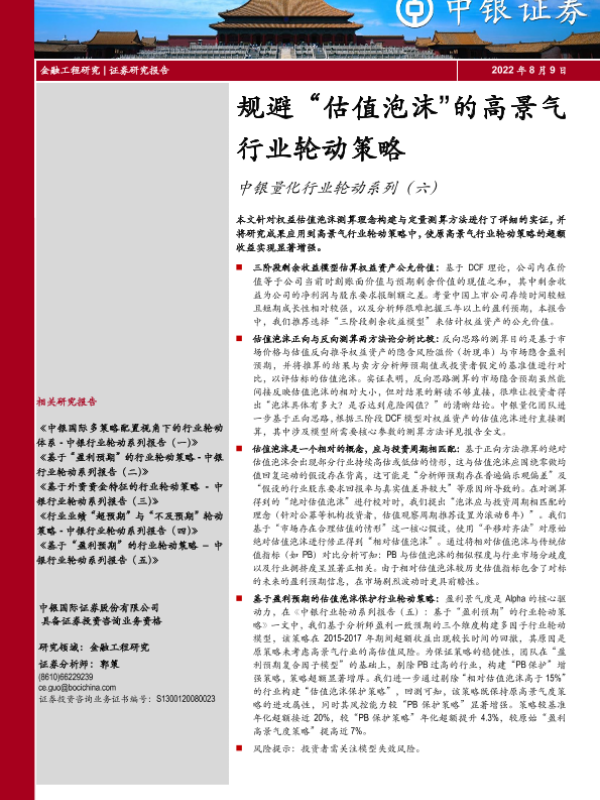 估值泡沫 行业轮动 量化策略 金融工程 高景气行业