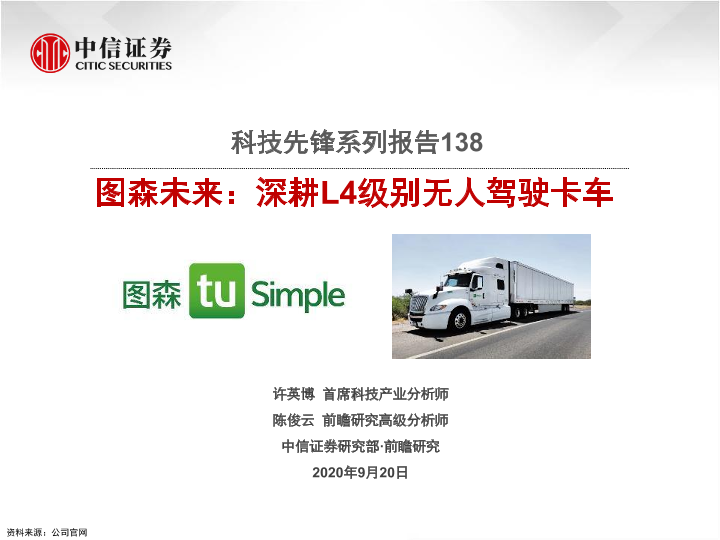 【中信证券】【20200920】图森未来:深耕L4级别无人驾驶卡车-22页