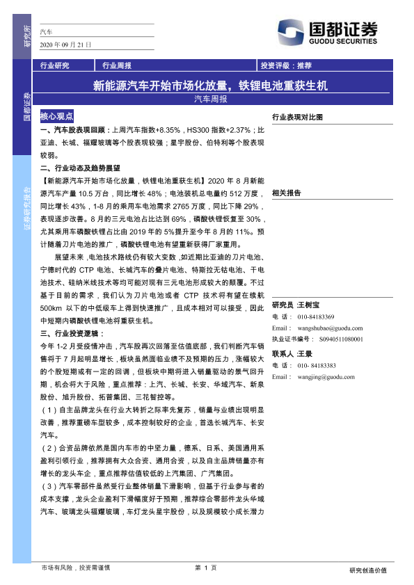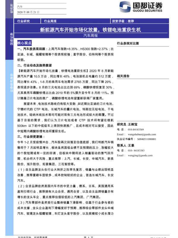 【国都证券】【20200921】汽车周报:新能源汽车开始市场化放量,铁锂电池重获生机-3页