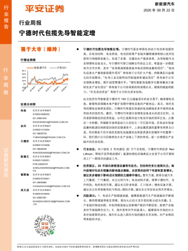 【平安证券】【20200922】20200922-平安证券-新能源汽车行业周报:宁德时代包揽先导智能定增-9页