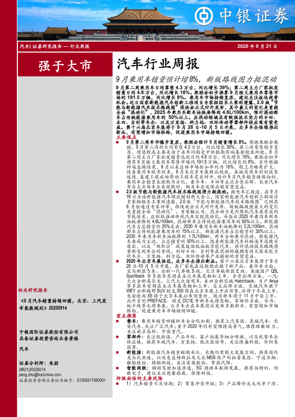 【中银证券】【20200921】20200921-中银证券-汽车行业周报:9月乘用车销量预计增8%,新版路线图力挺混动-15页