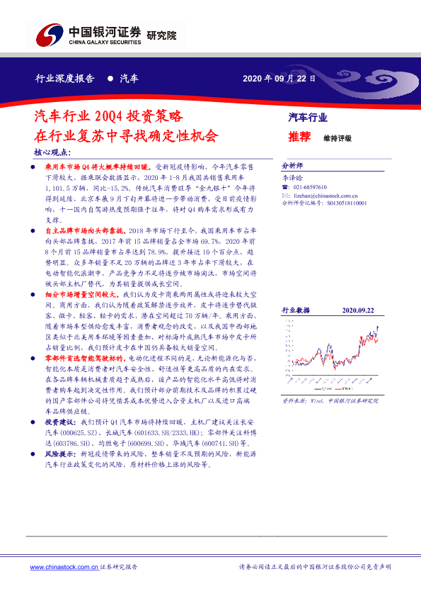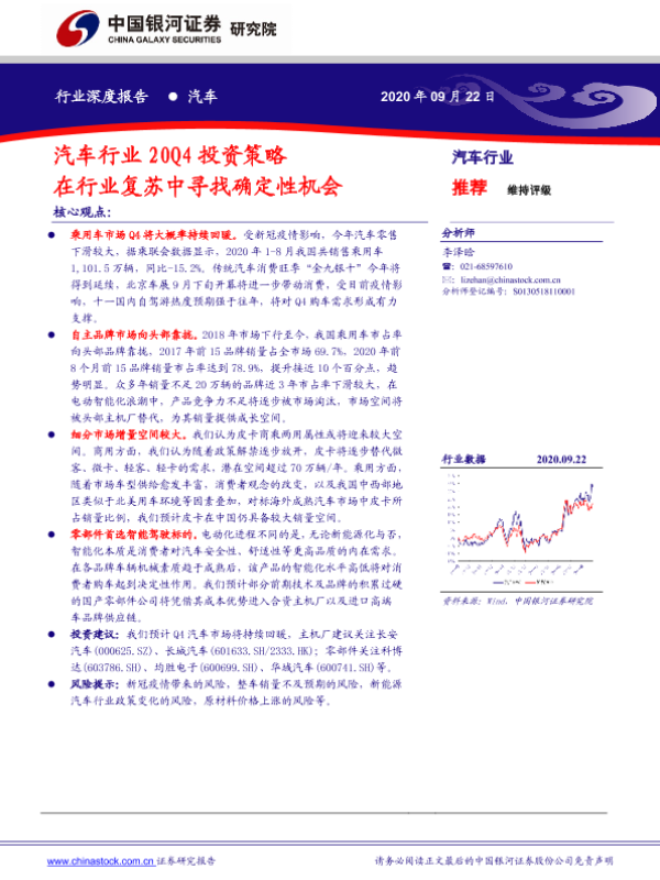 【银河证券】【20200922】汽车行业20Q4投资策略:在行业复苏中寻找确定性机会-21页