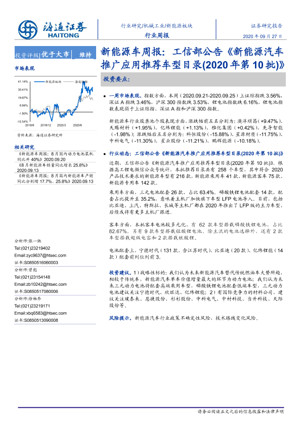 【海通证券】【20200927】新能源车周报:工信部公告《新能源汽车推广应用推荐车型目录(2020年第10批)》-3页