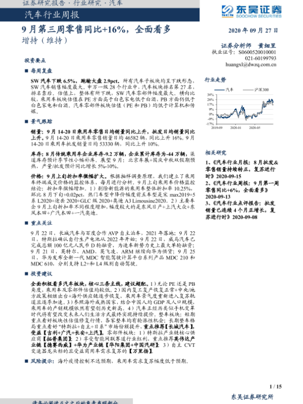 【东吴证券】【20200927】20200927-东吴证券-汽车行业周报:9月第三周零售同比+16%,全面看多-15页