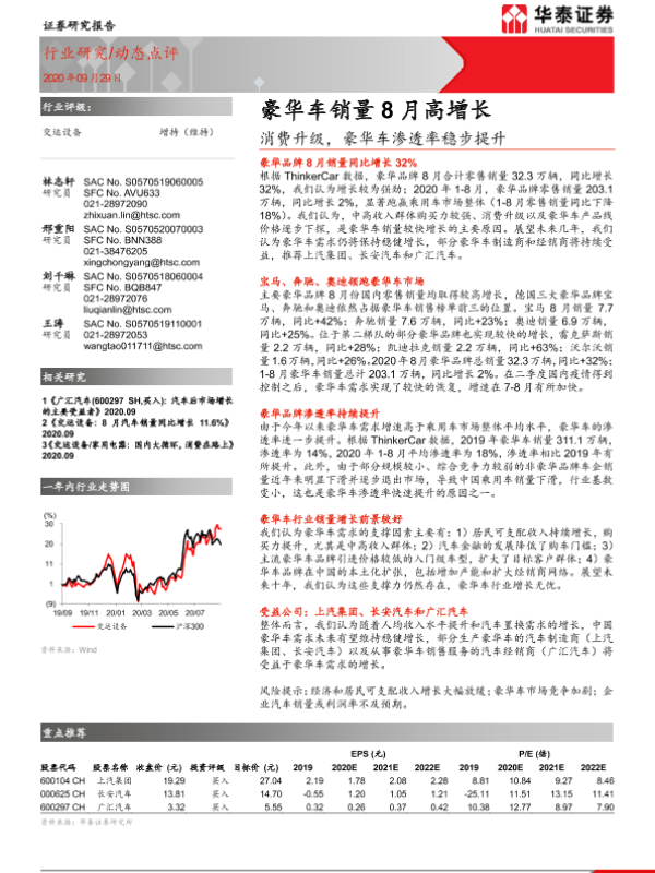 【华泰证券】【20200929】交运设备行业:消费升级,豪华车渗透率稳步提升-豪华车销量8月高增长-6页