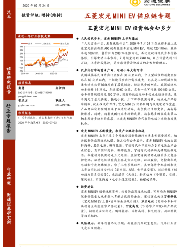 【财通证券】【20200924】五菱宏光MINI EV供应链专题:五菱宏光MINI EV投资机会知多少-23页